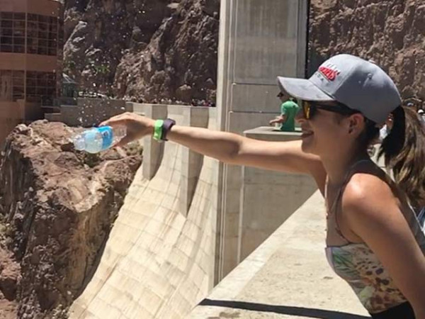 امریکا میں ہوور ڈیم پر آنے والی خاتون سیاح نے جب بوتل سے پانی نیچے بہایا تو وہ ہوا کے زور سے اوپرکی جانب اڑنے لگا۔