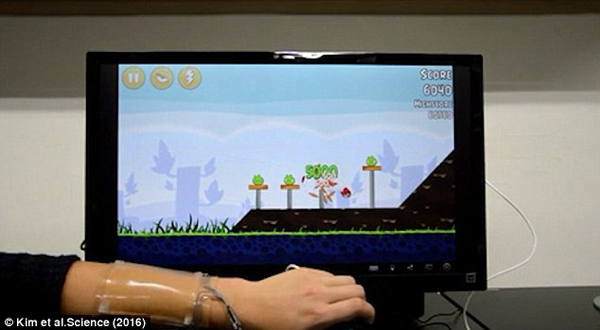 اس سلسلے میں ایک اسٹیکر پر گیم پیڈ چسپاں کرکے اس سے اینگری برڈ گیم کھیلا گیا ہے اور اس کےعلاوہ بازو پر نصب الیکٹرانک پٹی سے آپ پیانو بھی بجاسکتے ہیں ۔ ایپل واچ کے بعد لچکدار اسکرین پر مبنی آلات ، فونز اور گیم کنٹرولر پر زبردرست تحقیق ہورہی ہے۔ اس ضمن میں ایک لچکدار ٹچ پیڈ بنایا گیا ہے جو بازو پر چپکایا جاسکتا ہے اور اس سے اینگری برڈ گیم کھیلا گیا۔