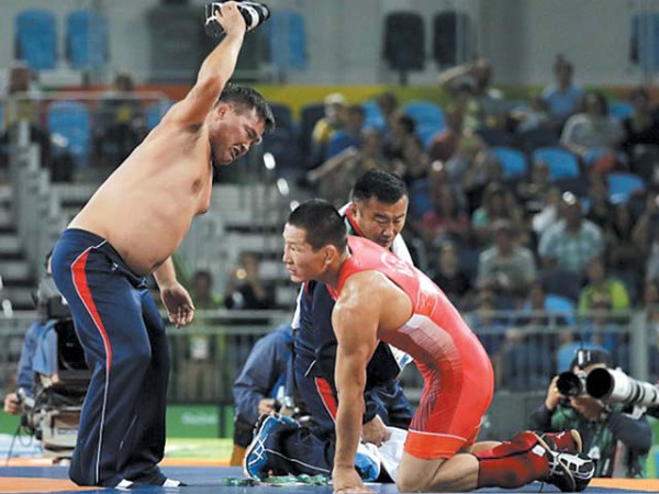 KARACHI: منگولیا کے ریسلنگ کوچ بیمبارین چین نے اپنے ریسلر کی پنالٹی پوائنٹ پر شکست پر بطور احتجاج کپڑے اتار ڈالے۔