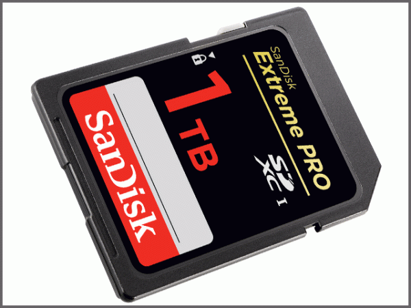 میموری کارڈز بنانے والی مشہور کمپنی ''سین ڈسک'' (SanDisk) نے دنیا کے پہلے 1 ٹیرابائٹ یعنی 1024 گیگابائٹ گنجائش والے ایس ڈی کارڈ کا پروٹوٹائپ پیش کردیا ہے۔