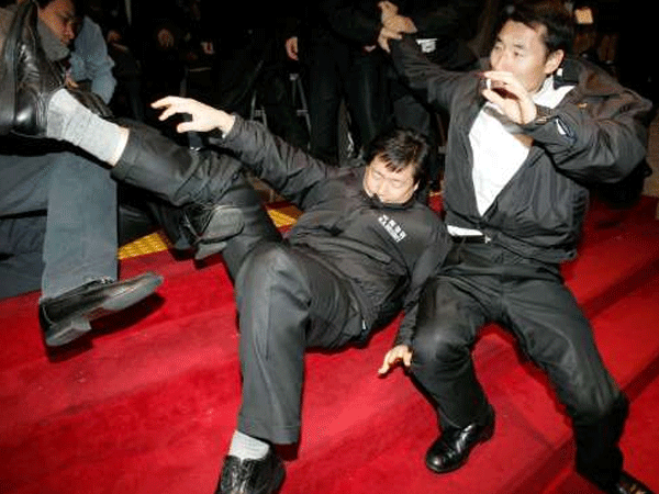 جنوبی کوریا میں ہی ایک اور نیشنل اسمبلی کی کارروائی کے دوران اسپیکر کی جانب سے بل منظور کیے جانے کے بعد سیکیورٹی گارڈ ان کے چیمپیر میں ان کو گھیرے بیٹھے ہیں تاکہ اپوزیشن کی جانب سے ان پر کسی قسم کا کوئی حملہ نہ کیا جائے۔