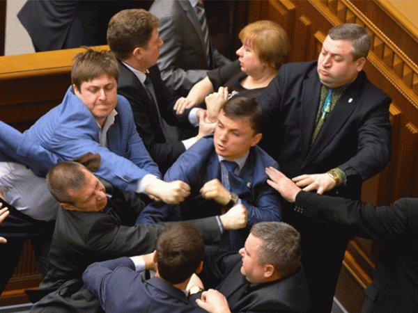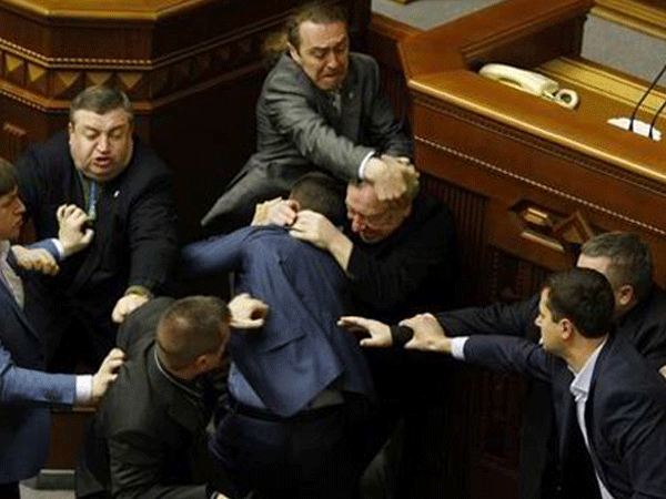 یوکرین کی پارلیمنٹ میں بھی حکومتی اور اپوزیشن ارکان کے درمیان بھی لڑائی کا ایک منظر پیش کیا گیا۔