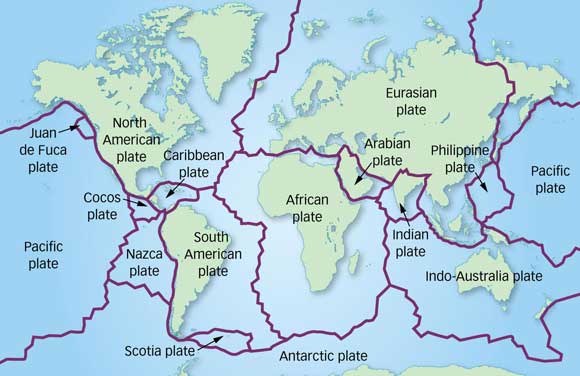 یاد رہے کہ زمین کی سطح ٹھوس ضرور ہے لیکن سینکڑوں چٹانی ٹکڑوں میں ٹوٹی ہوئی بھی ہے جنہیں ''ٹیکٹونک پلیٹیں'' کہتے ہیں۔ زمین پر موجود تمام براعظم اور تمام سمندر ان ہی ٹیکٹونک پلیٹوں پر مشتمل ہیں۔ ٹیکٹونک پلیٹیں سمندر کے نیچے پتلی اور خشکی والے مقامات پر موٹی ہوتی ہیں۔