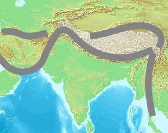 ہمالیائی پٹی پر بھارتی پلیٹ ہر سال تھوڑی تھوڑی کرکے یوریشین پلیٹ کے نیچے غائب ہوتی جارہی ہے اور اسی لیے ارضیات میں یہ جملہ بھی مشہور ہوگیا ہے: ہمالیہ، بھارت کو کھارہا ہے!