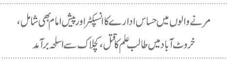 مرنے والوں میں حساس ادارے کا انسپکٹر اور پیش امام بھی شامل،خروٹ آباد میں طالب علم کا قتل، کچلاک سے اسلحہ برآمد.