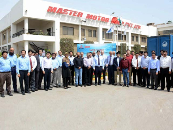 کراچی: بینکرزاورلیزنگ کمپنی کے نمائندوںکی ماسٹرموٹرکارپوریشن (پرائیویٹ) لمیٹڈ کے پلانٹ آمد کے موقع پر کارپوریشن کے ایم ڈی ندیم ملک، ایگزیکٹو ڈائریکٹر عمرپیرزادہ، سینئرجی ایم سیلز اینڈمارکیٹنگ محمدسلمان، جی ایم پلانٹ عامر لودھی،سینئرمنیجر عظیم شاہ ودیگرکا گروپ ۔ فوٹو : ایکسپریس