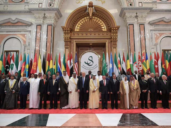 انھوں نے کہا کہ بہتر مستقبل صرف اسی صورت میں ممکن ہے جب ممالک دہشتگردوں اور انتہا پسندوں کو نکال باہر کریں گے، وہ دہشتگردوں کو اپنے اپنے ملکوں سے چن چن کر ختم کر دیں، ذمے دار ریاستوں کو اپنی اپنی ذمے داریوں کو ادا کرنا بھی ضروری ہے، اتحادواتفاق کے ساتھ مشرق وسطیٰ میں دہشتگردی سے متاثر ملکوں میں معصوم لوگوں کے قتل کے ساتھ ساتھ عورتوں پر جبر کا خاتمہ اور مسیحیوں اور یہودیوں کے قتل و استحصال کا روکنا ضروری ہے۔ قبل ازیں سعودی فرمانروا شاہ سلما ن نے خطاب کرتے ہوئے کہا کہ دہشتگردی کے خلاف جنگ میں ہم سب ایک پیج پر ہیں،دہشتگردی پوری دنیا کے لیے خطرہ بن چکی ہے، ڈیڑھ ارب مسلمان دہشت گردی کے خلاف امریکا کے اتحادی ہیں اور ہمیں دنیا میں امن و استحکام کے لیے مشترکہ کوششیں کرنی چاہیے، اسلامی عسکری اتحاد دہشتگردی کو شکست دینے کے لیے بنایا گیا ہے، امید کرتے ہیں دیگرممالک بھی اس اتحاد میں شامل ہونگے، شاہ سلمان نے مسئلہ فلسطین کے پرامن حل پر بھی زور دیتے ہوئے کہا کہ دنیا میں قیام امن کے لیے اس مسئلے کو حل کرنا سب سے بنیادی چیز ہے۔ صدر ڈونلڈ ٹرمپ اور شاہ سلمان دونوں نے ایران کے حوالے سے خاصے سخت الفاظ استعمال کیے۔