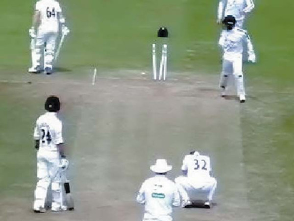 بیٹسمین کو اپنے اس انداز میں آؤٹ ہونے پر یقین نہ آیا اور وہ شرمندگی سے سر ہلاتے ہوئے پویلین واپس لوٹ گئے۔
