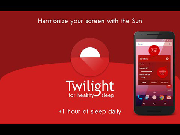 ٹوائلائٹ رات کو اسکرین پر سرخ فلٹر لگادیتی ہے تاکہ آپ کی آنکھوں پر زور نہ پڑے۔ اس کے لیے ایپ پر جاکر نائٹ شفٹ موڈ پر جائیں اور اپنی نظر کی حفاظت کریں۔ ایپ مفت میں یہاں سے ڈاؤن لوڈ کیجئے bit.ly/twilight427۔