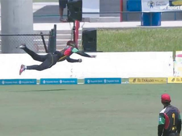 راستے میں موجود ایلن نے فل ڈائیو لگا کر اپنا بائیاں ہاتھ آگے بڑھایا اور کیچ تھام کر سب کو حیرت میں ڈال دیا۔