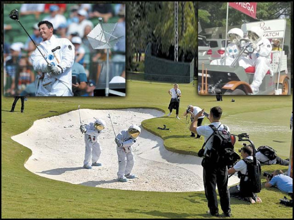 آئرش گالفر روری میکلروئے خلانورد کے روپ میں گالف کورس پہنچ گئے۔