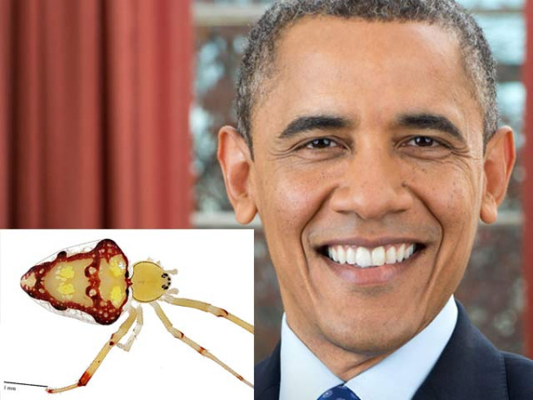 ماہرینِ حیوانیات نے ایک نئی مکڑی کو امریکی صدر بارک اوبامہ کا نام دیا ہے اور بائیں جانب اس مکڑی کی تصویر دیکھی جاسکتی ہے۔ فوٹو: فائل