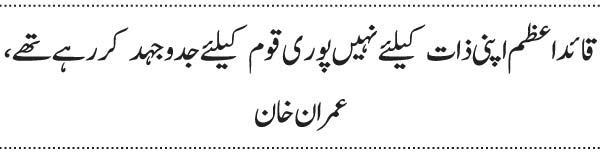 چیئرمین تحریک انصاف نے کہا کہ قائد اعظم اپنی ذات کے لئے جدوجہد نہیں کررہے تھے ان کے پیچھے پوری قوم تھی اور جب پاکستان بن رہا تھا تو لوگ کہتے تھے کہ یہ خواب شرمندہ تعبیر نہیں ہوگا لیکن جب آپ کسی کام کا ارادہ کرلیتے ہیں تو پھر پیچھے نہیں ہٹنا چاہیے۔