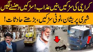 کراچی کی سڑکیں بنیں عذاب !سڑکیں دھنسنے لگیں شہری پریشان ، ٹوٹی سڑکیں، بڑھتے حادثات!